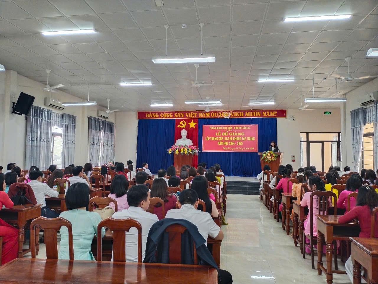 Chiều 21/3/2025, Trường Chính trị Lê Duẩn tổ chức bế giảng Lớp Trung cấp lý luận chính trị hệ không tập trung, thành phố Đông Hà, năm học 2024-2025 tại Trung tâm Bồi dưỡng Chính trị thành phố Đông Hà.