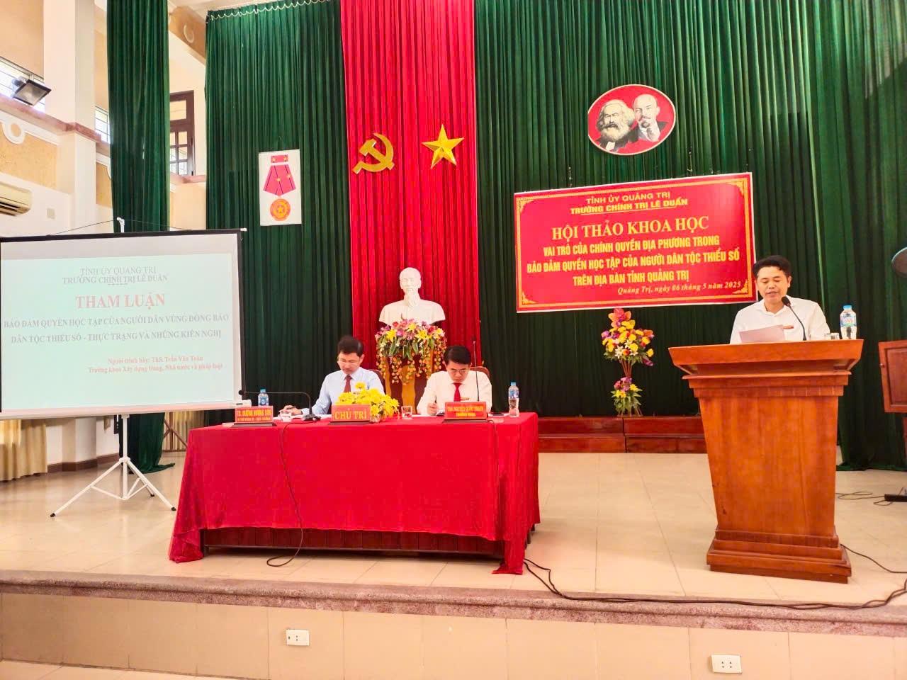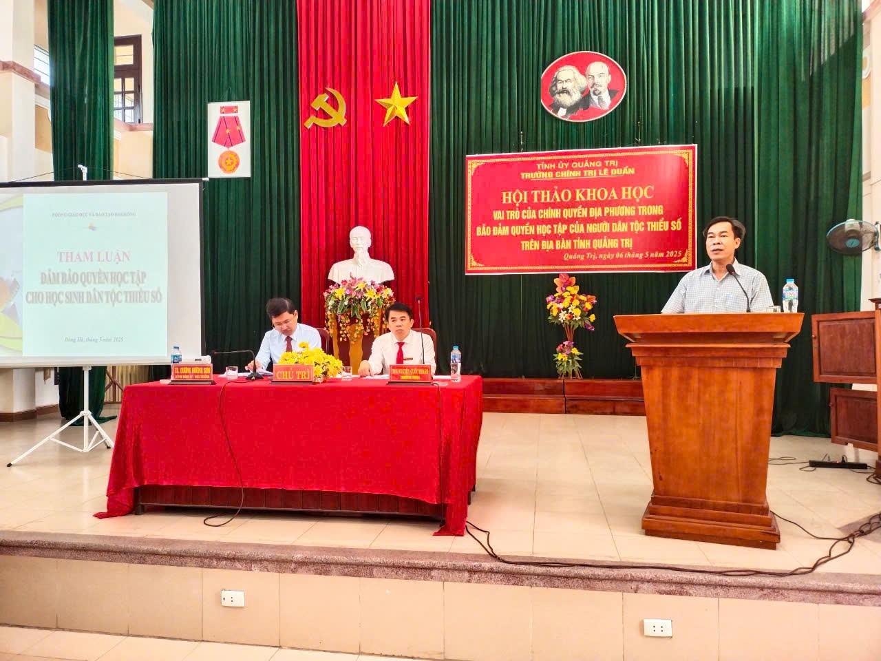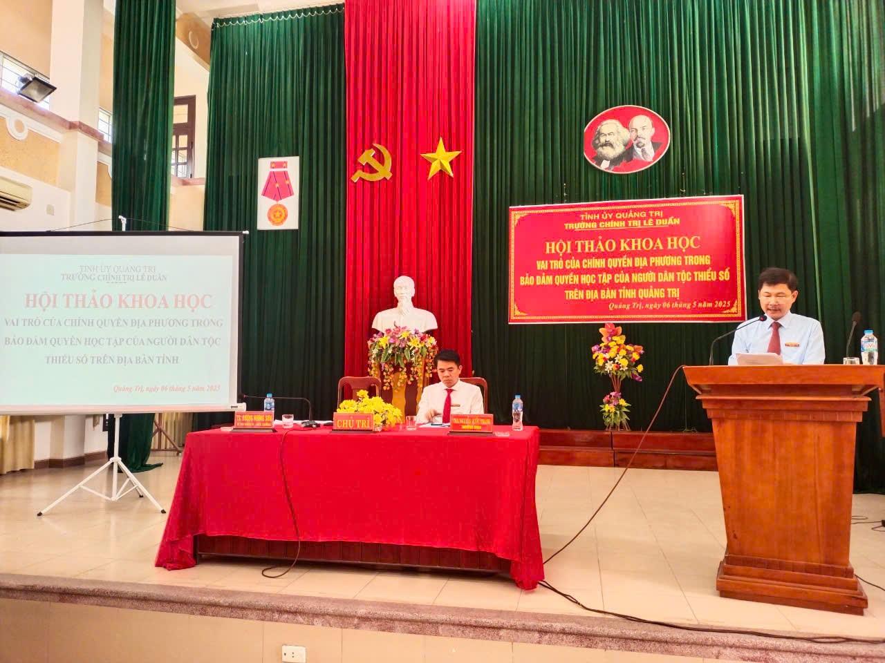 Sáng ngày 06/5/2025, Trường Chính trị Lê Duẩn đã tổ chức Hội thảo khoa học: “Vai trò của chính quyền địa phương trong bảo đảm quyền học tập của người dân tộc thiểu số trên địa bàn tỉnh Quảng Trị”.