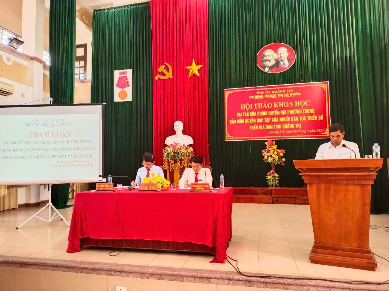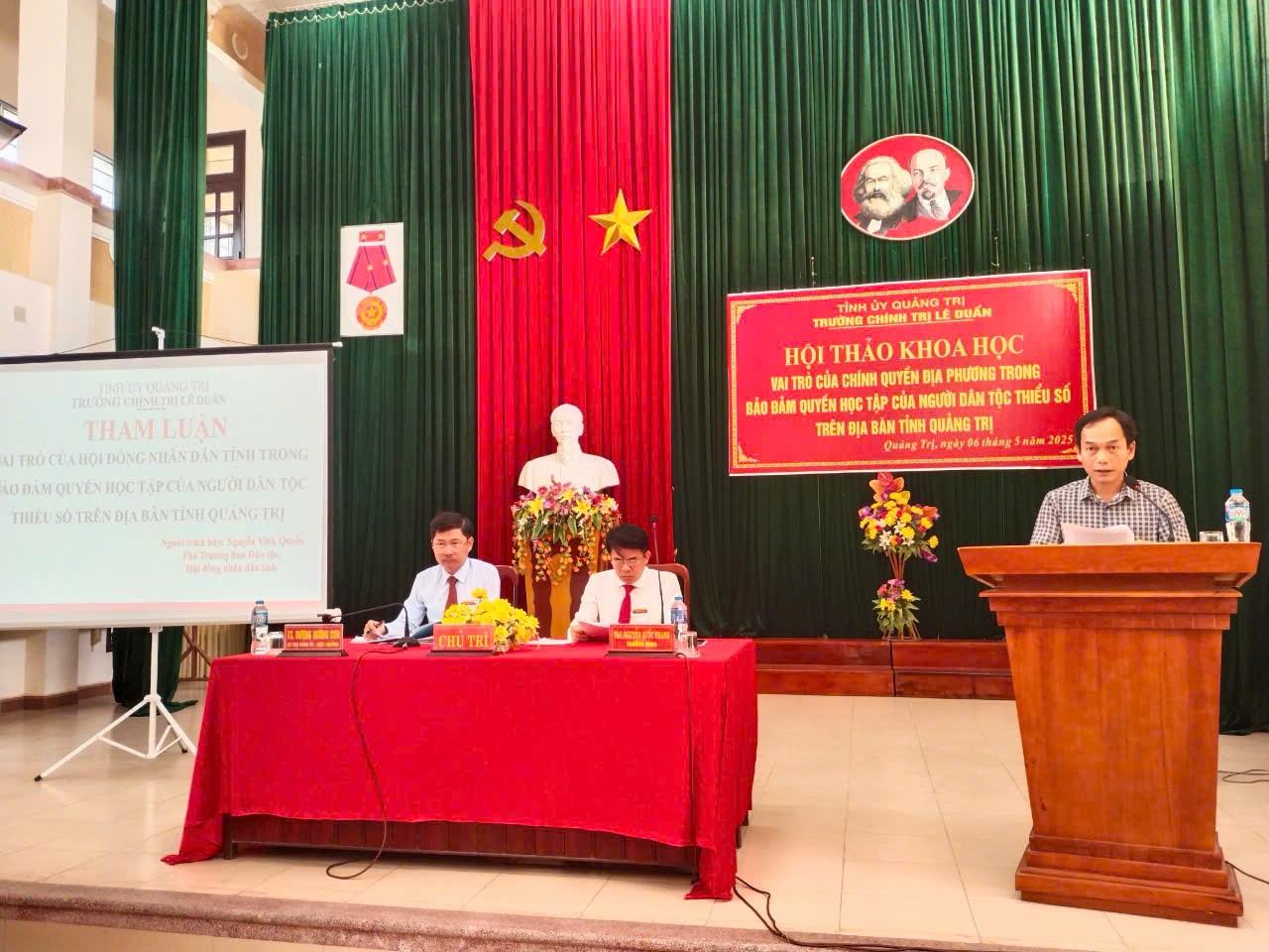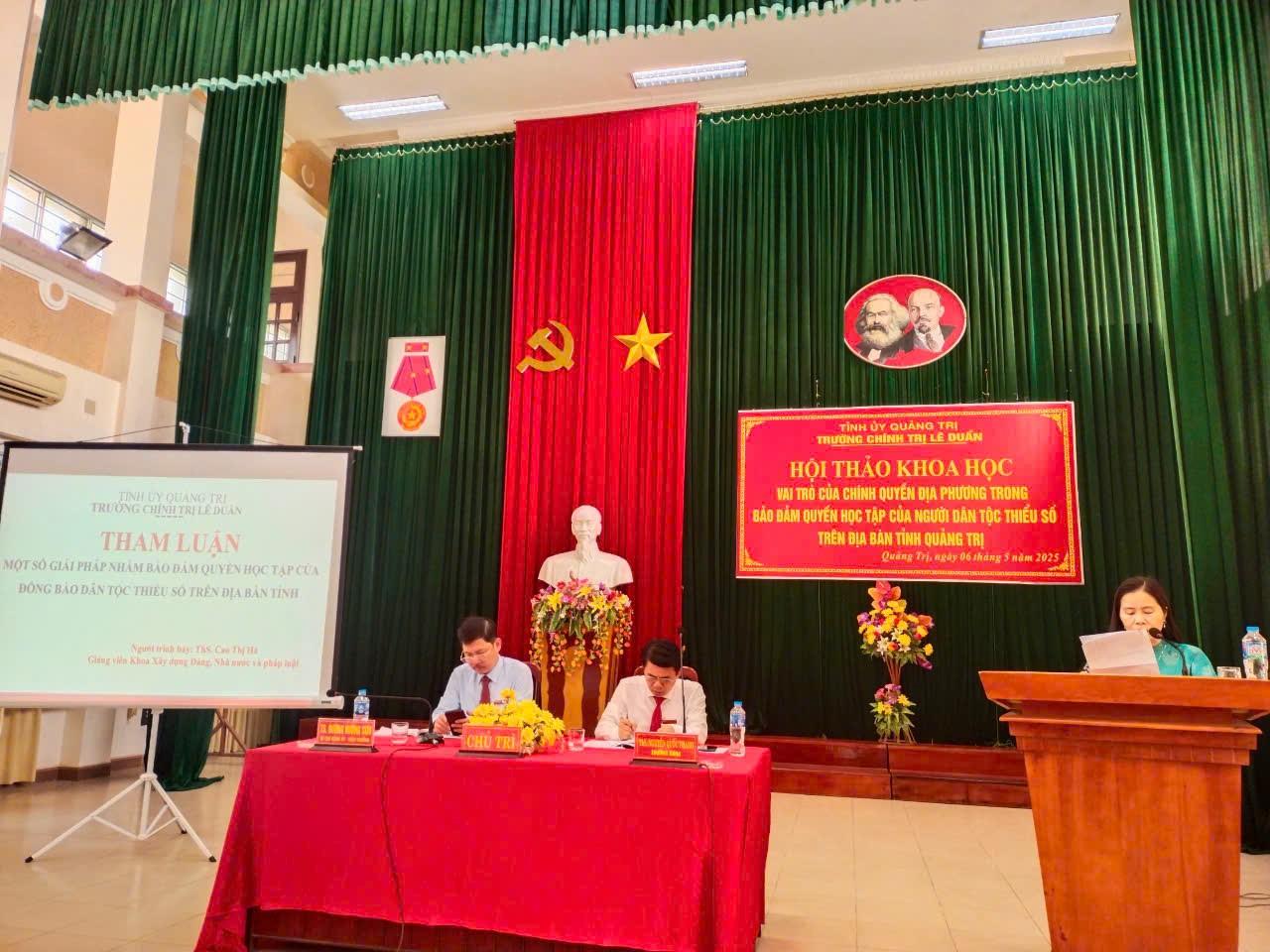 Sáng ngày 06/5/2025, Trường Chính trị Lê Duẩn đã tổ chức Hội thảo khoa học: “Vai trò của chính quyền địa phương trong bảo đảm quyền học tập của người dân tộc thiểu số trên địa bàn tỉnh Quảng Trị”.