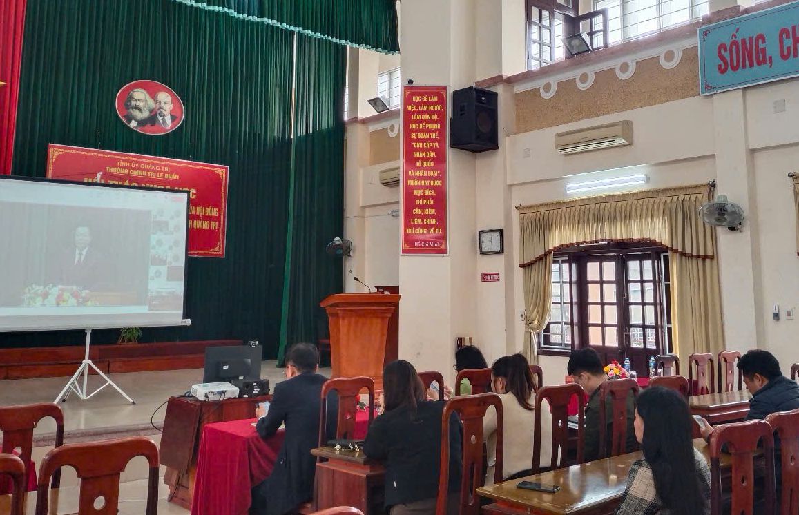 Điểm cầu Trường Chính trị Lê Duẩn tỉnh Quảng Trị. Ảnh: TL.