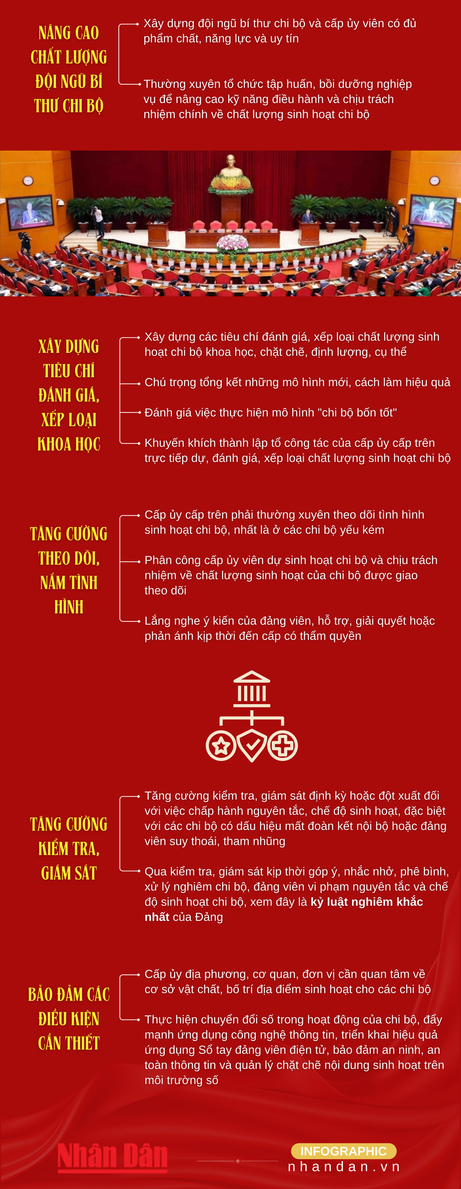 Chỉ thị số 50-CT/TW của Ban Bí thư nhấn mạnh tầm quan trọng của sinh hoạt chi bộ, xem đây là nơi bồi đắp lý tưởng cách mạng, rèn luyện bản lĩnh chính trị, đạo đức, lối sống cho đảng viên, đồng thời là nơi triển khai thực hiện chủ trương, nghị quyết của Đảng thành hành động thiết thực, là cầu nối giữa Đảng và nhân dân.